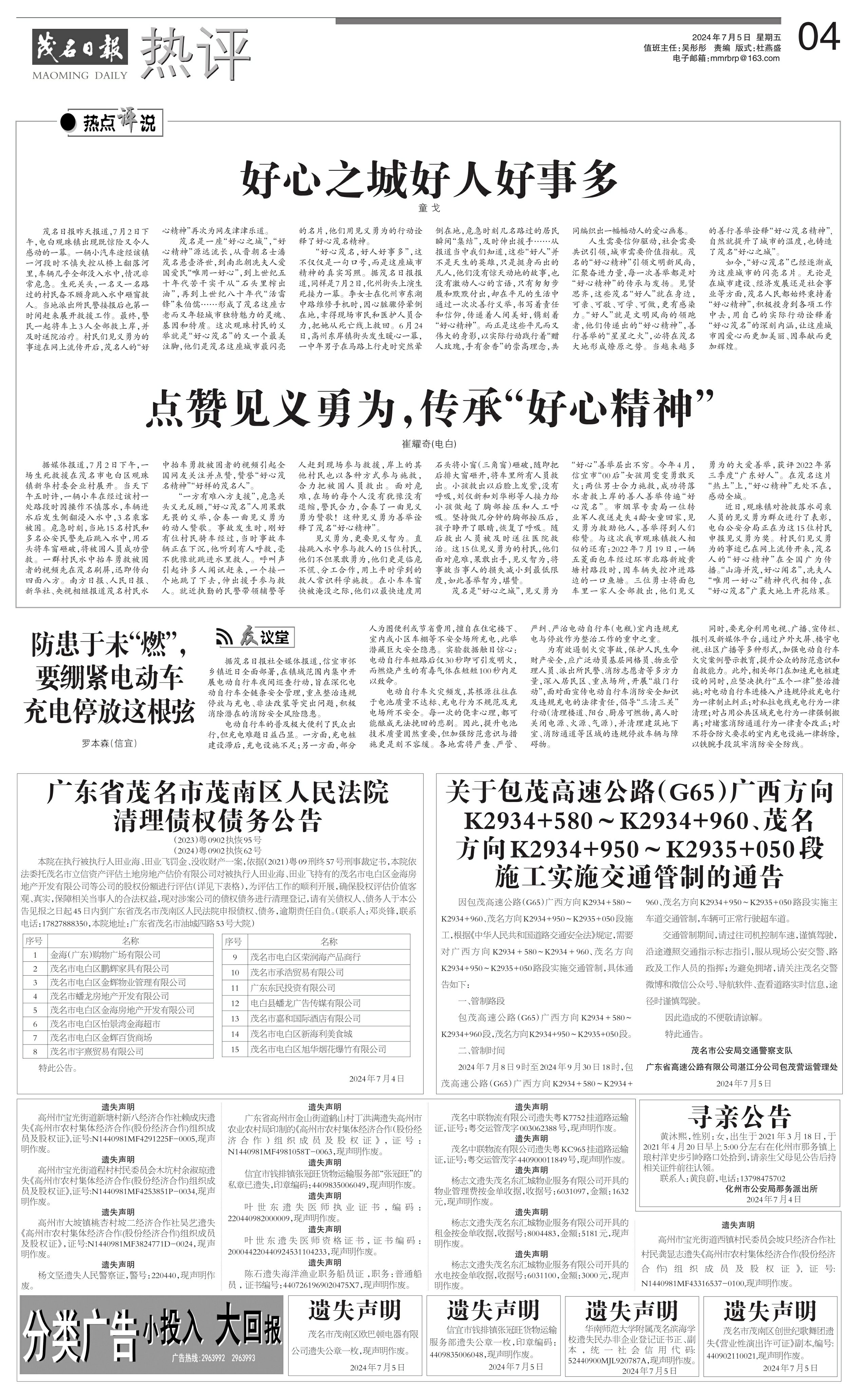 关于包茂高速公路(G65)广西方向K2934+580~K2934+960、茂名方向K2934+950~K2935+050段施工实施交通管制的通告