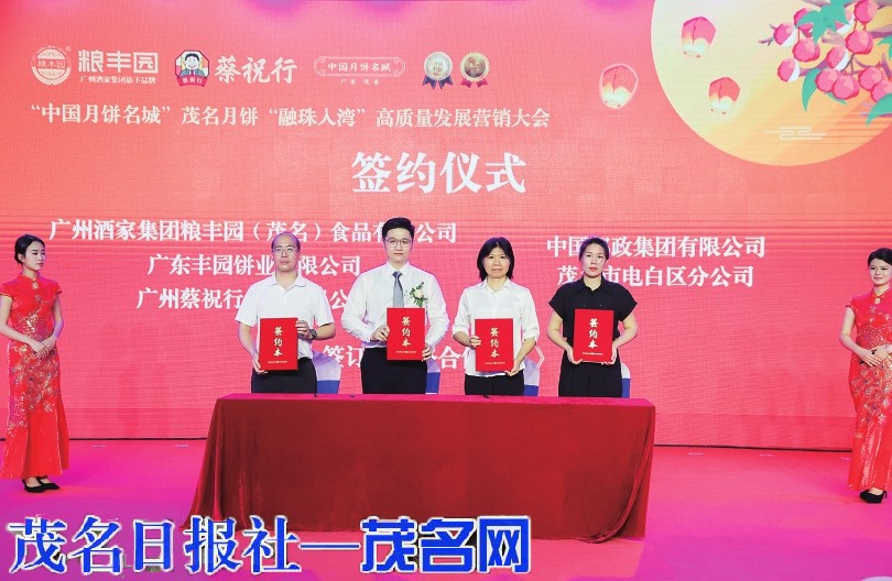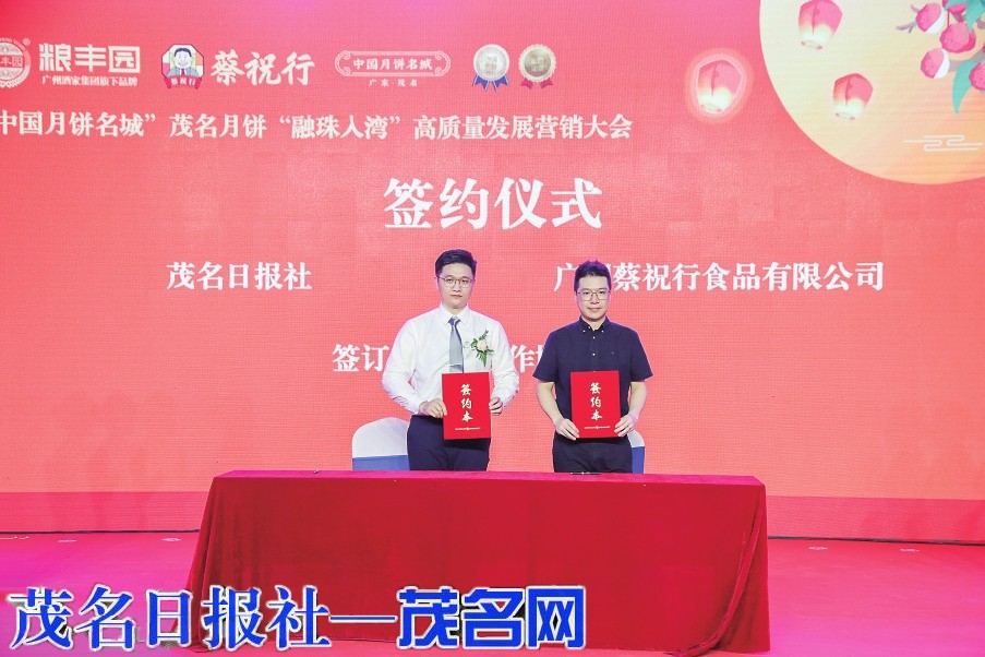 为深入贯彻落实市委、市政府工作要求,以产业发展赋能乡村振兴,助力“百千万工程”,进一步提高“茂名月饼”在粤港澳大湾区的品牌影响力,昨晚,“中国月饼名城”茂名月饼“融珠入湾”高质量发展营销大会(粮丰园专场)在广州酒家集团粮丰园(茂名)食品有限公司举行。领导、嘉宾、行业人士及媒体人员汇聚一堂,共同见证战略合作协议签订,开启媒企合作助力我市月饼产业高质量发展新篇章。