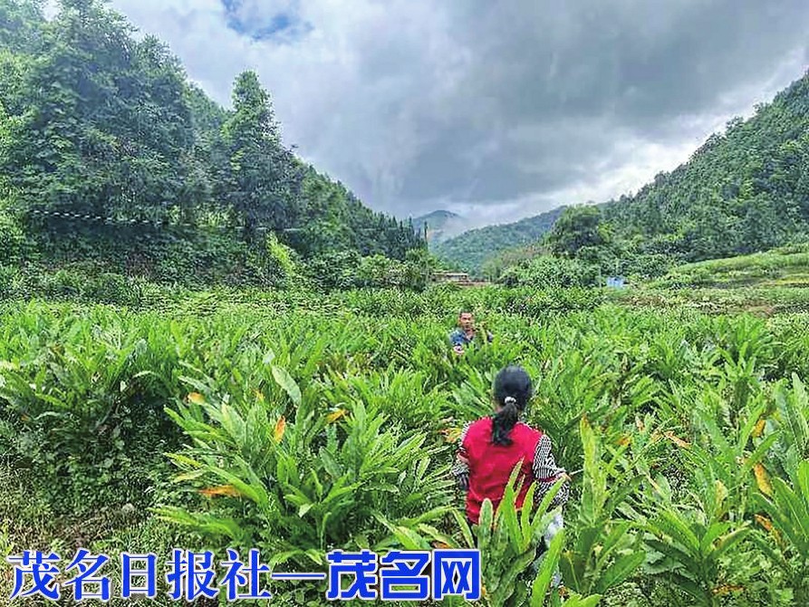 本报讯 近段时间,信宜市新宝镇桂垌村一片片“南姜”幼苗长势喜人,村民们忙碌着打理“南姜”幼苗(如右图)。