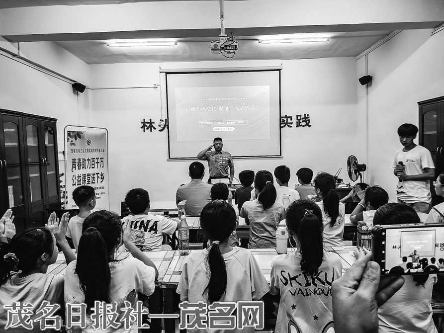 本报讯 前日,茂名市军休所军休干部思政课宣讲团走进电白区林头镇,联合广油化工追光盛夏实践团为新时代文明实践站课堂的孩子们上了一堂红色文化思政课。