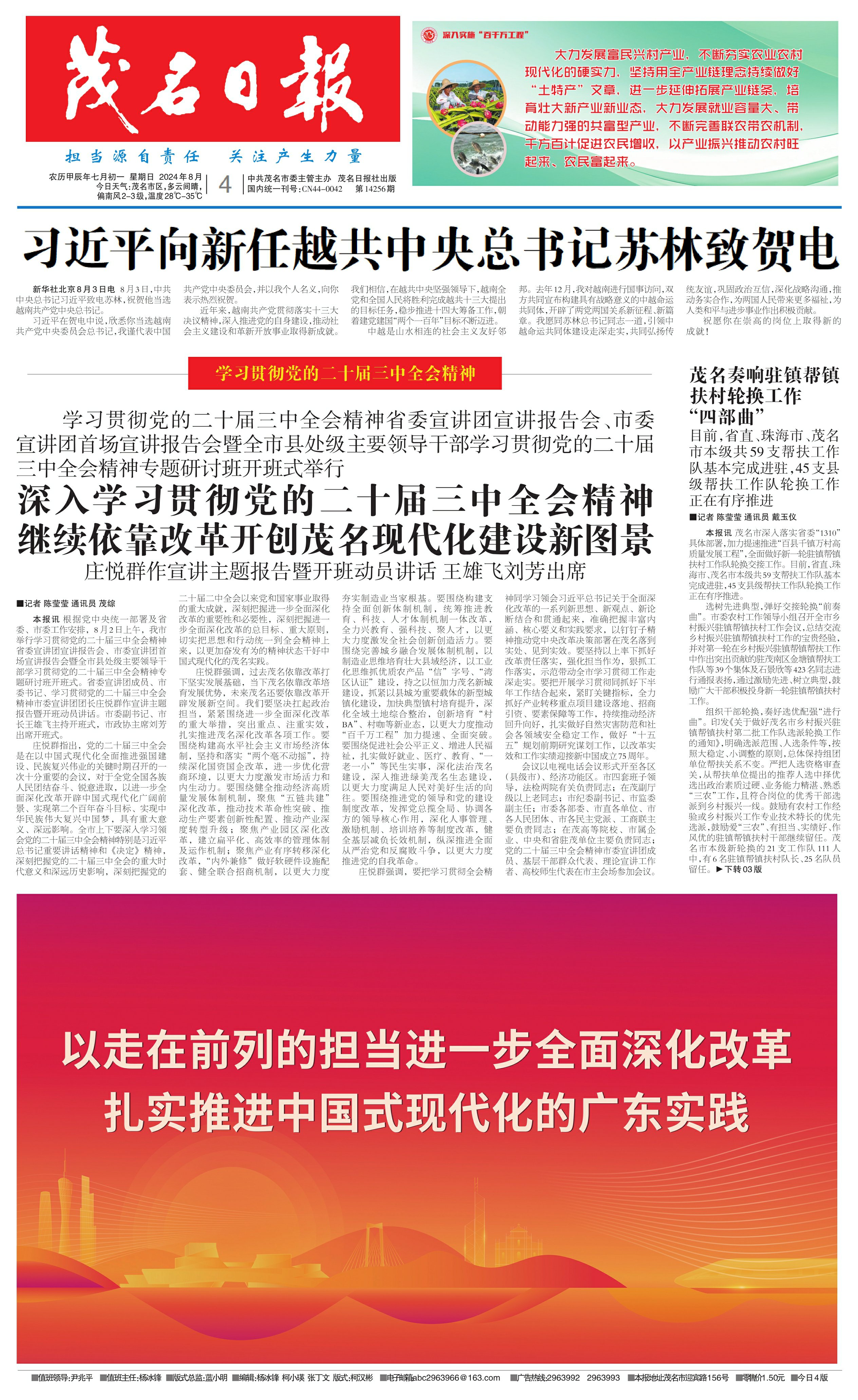 深入学习贯彻党的二十届三中全会精神 继续依靠改革开创茂名现代化建设新图景