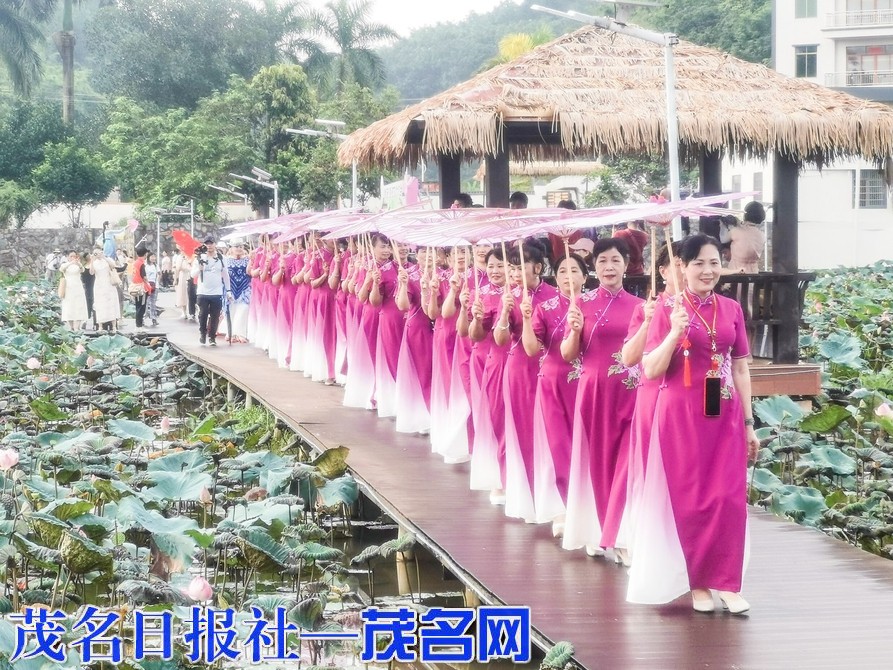 活动丰富多彩,吸引了众多游客参与。在彭村文化长廊,高州市第一届中国象棋团体赛精彩上演,来自28个镇街的象棋爱好者们齐聚一堂,展开激烈的团体对决,智慧与策略的碰撞,展现中华棋艺的魅力。身着优雅旗袍的佳丽们,伴随着悠扬的音乐,穿梭于莲心桥、百亩荷花池等点位,进行旗袍文化展示,成为一道令人瞩目的风景线。静心亭里,墨香四溢,书法家现场挥毫泼墨,书写美好祝愿,赠与游客作为纪念。清风亭处,音乐爱好者倾情演奏,乐曲悠扬,让人沉醉在温柔的旋律中。远香亭的木偶戏表演,让游客近距离感受木偶戏的魅力。