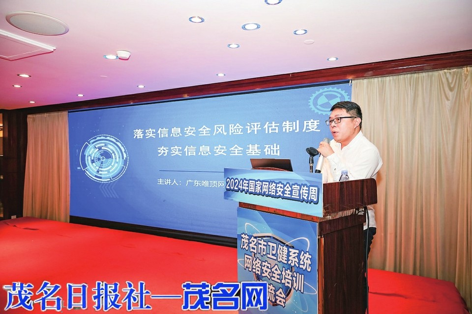 本报讯 今年9月9日至15日是国家网络安全宣传周。为切实做好我市卫生健康系统网络安全工作、提升网络安全防护能力、强化网络安全意识,近日,市卫生健康局联合市计算机信息网络安全协会举办我市卫生健康系统网络安全培训交流会,邀请多位网络安全领域专家前来分享最新的网络安全理念、技术应用和经验。各区、县级市卫生健康局分管领导和相关业务科室科长,全市二级及以上公立医疗机构分管副院长和业务科室负责人,茂名石化医院、茂名油城医院分管副院长以及业务科室负责人参加了培训。