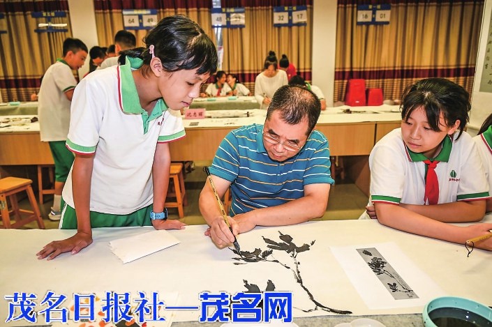 本报讯 近日,茂南区美术家协会在祥和中学开展书画进校园活动,书画家们在校园内指导学生进行美术、书法创作。此次活动,为学校师生送上精神粮食,丰富学校文化生活,培养学生提高对美术书法的兴趣,传承传统文化,弘扬民族精神,为校园建设注入新的文化内涵。让同学们心中种下艺术的种子,在书画的世界里对美的理解更加深远,更具有开创性。茂名日报社全媒体记者 黄信涛 摄影报道