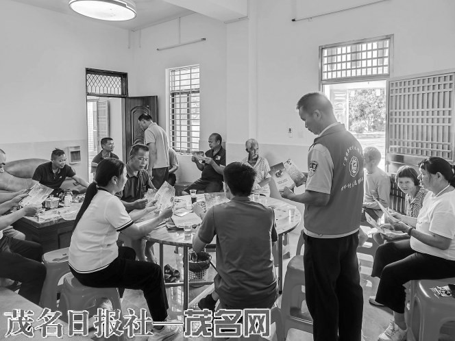 本报讯 为切实做好反邪教工作,营造“崇尚科学、反对邪教”的氛围,不断筑牢辖区内的反邪教防线,近日,信宜市丁堡镇人民政府联合派出所、司法所、社工站和各村委会开展“同心反邪共守平安”主题宣传活动(如图)。
