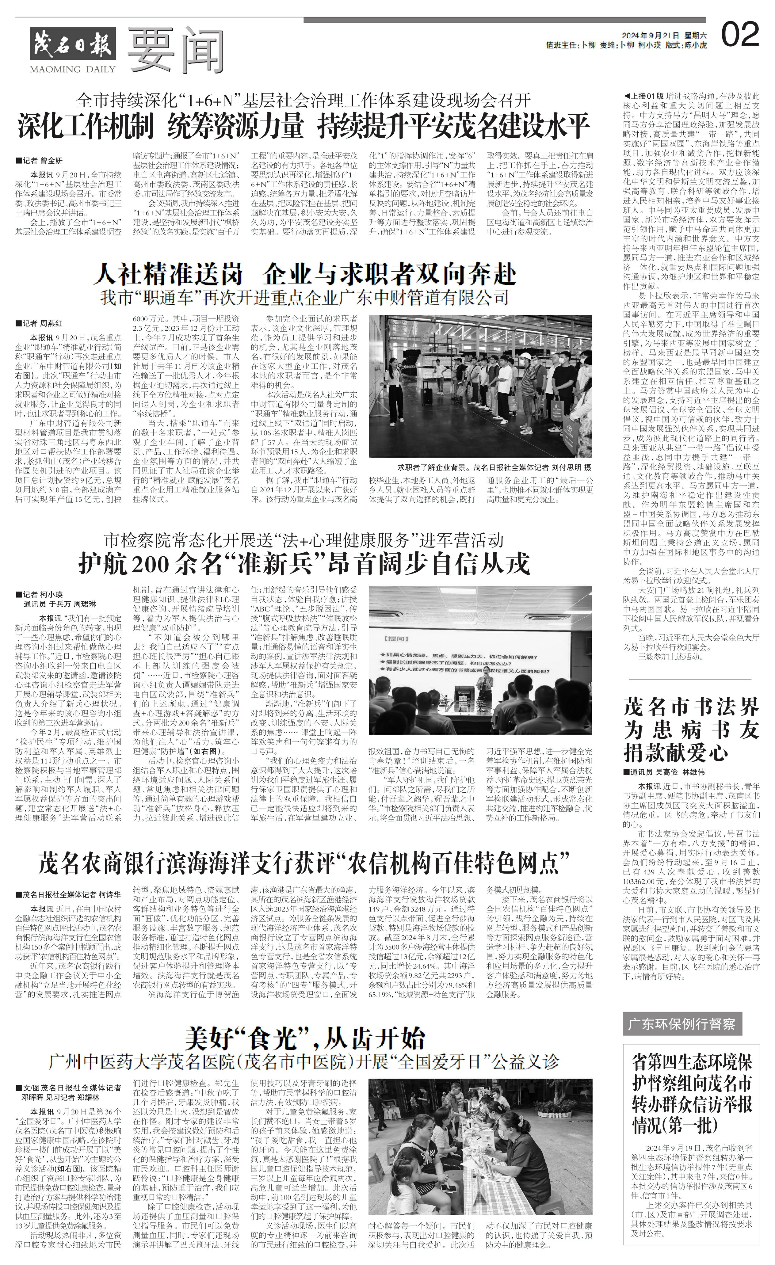 2024年9月19日,茂名市收到省第四生态环境保护督察组转办第一批生态环境信访举报件7件(无重点关注案件),其中来电7件,来信0件。本批交办的信访举报件涉及茂南区6件、信宜市1件。