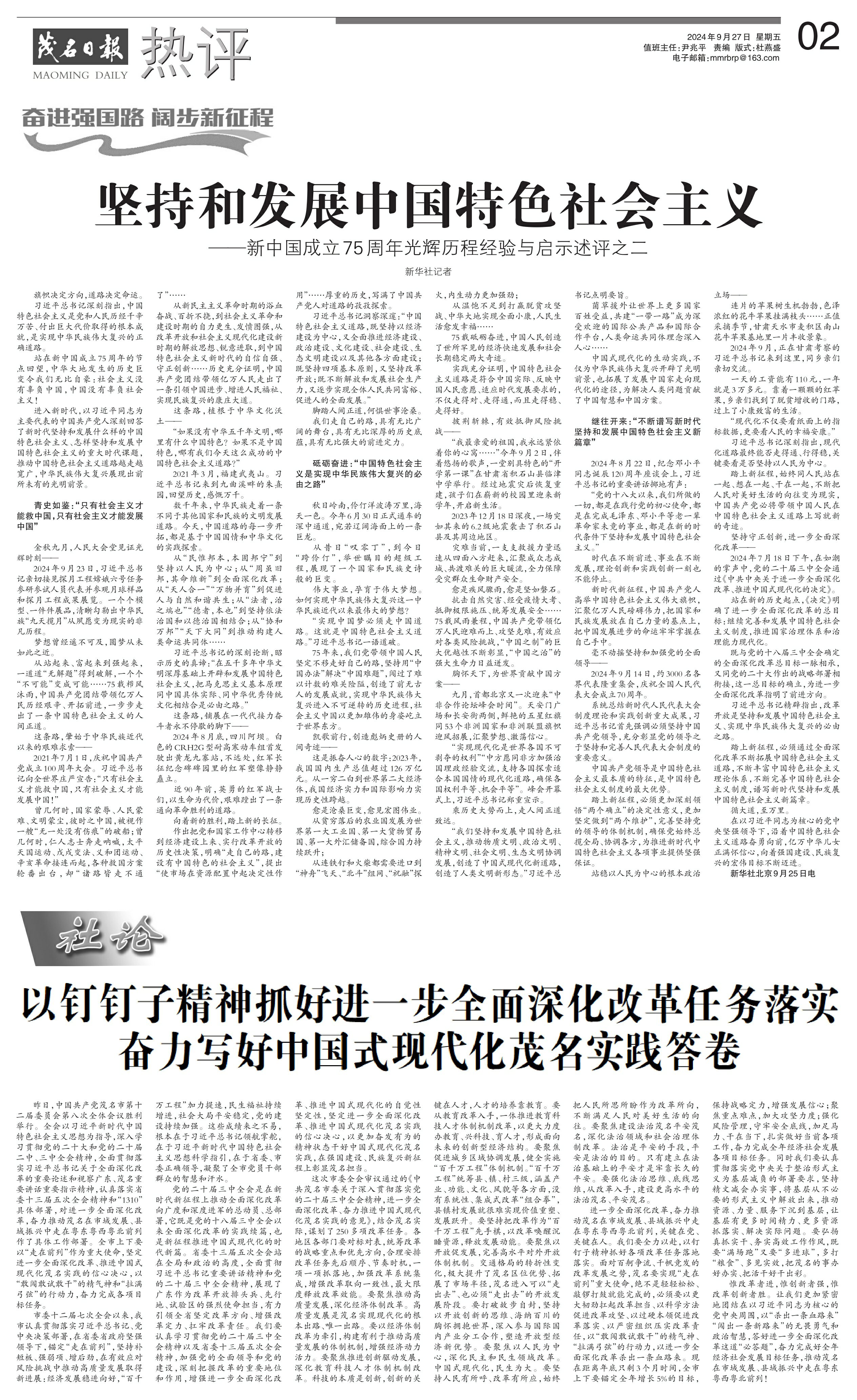 以钉钉子精神抓好进一步全面深化改革任务落实 奋力写好中国式现代化茂名实践答卷