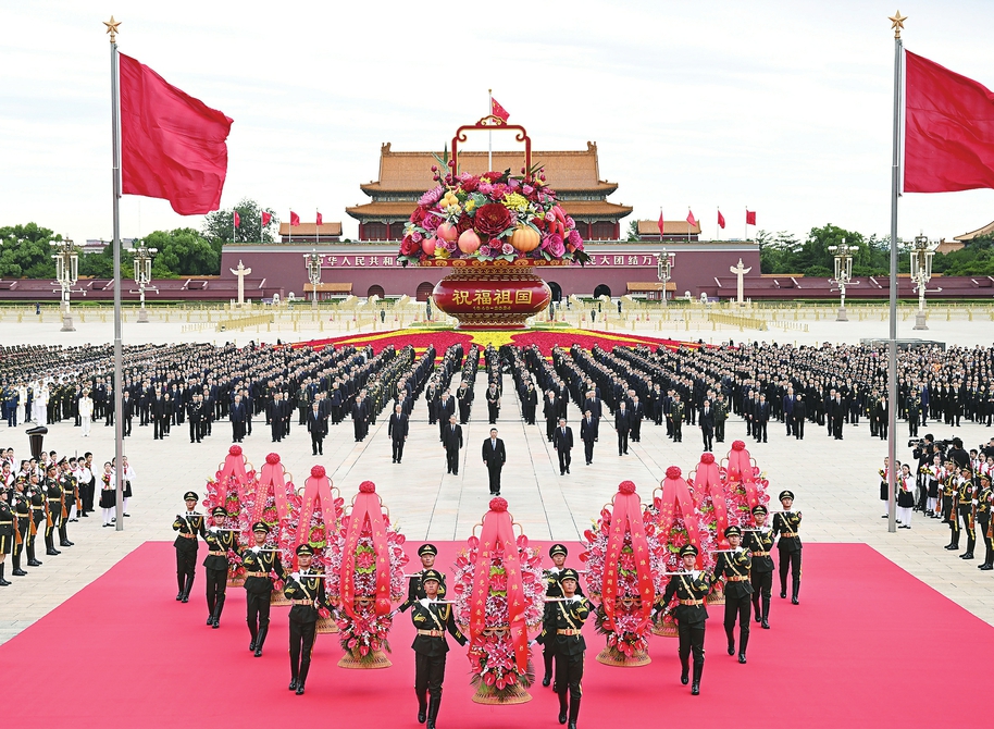 9月30日上午,党和国家领导人习近平、李强、赵乐际、王沪宁、蔡奇、丁薛祥、李希、韩正等来到北京天安门广场,出席烈士纪念日向人民英雄敬献花篮仪式。 新华社记者 谢环驰 摄