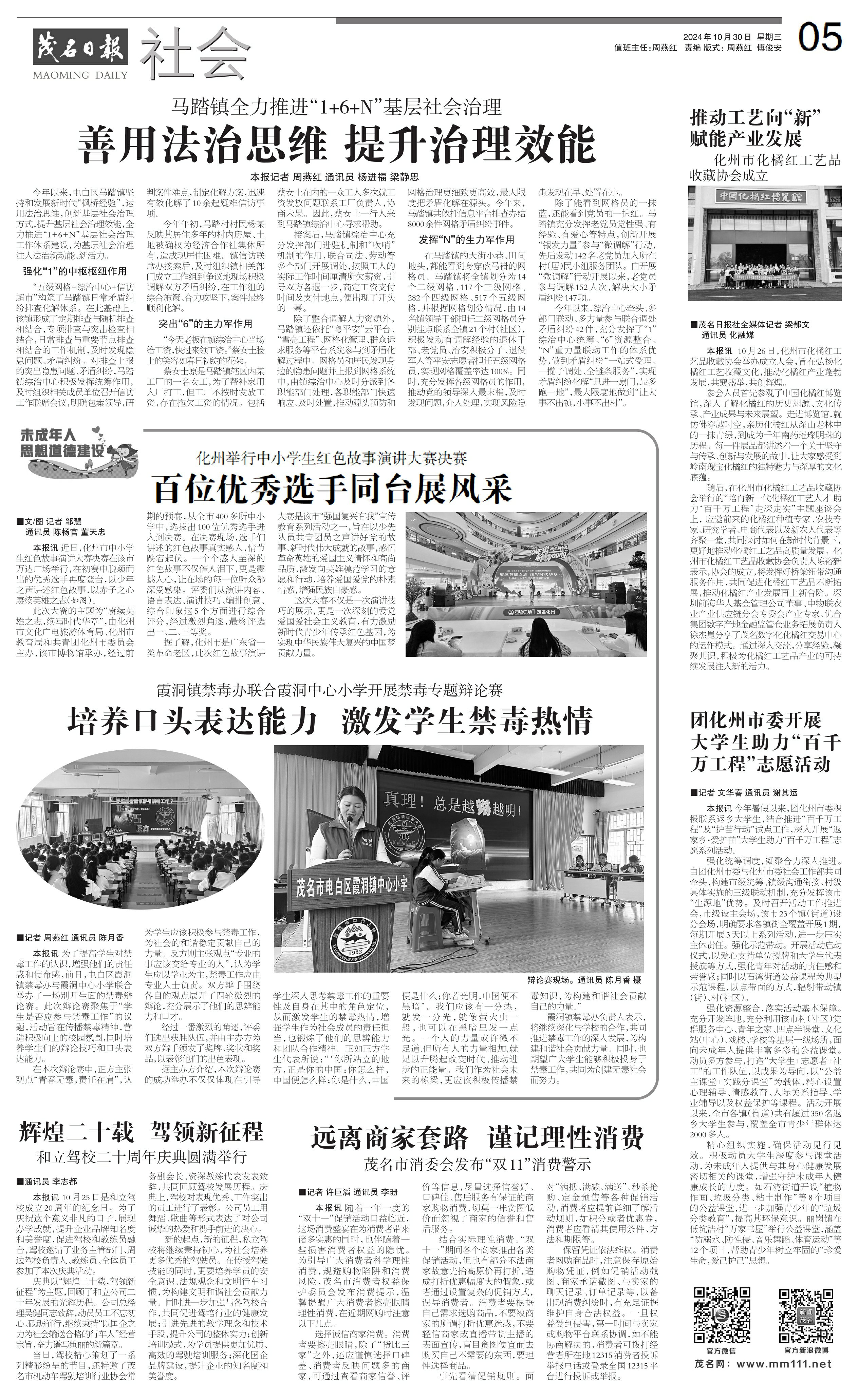 本报讯 为了提高学生对禁毒工作的认识,增强他们的责任感和使命感,前日,电白区霞洞镇禁毒办与霞洞中心小学联合举办了一场别开生面的禁毒辩论赛。此次辩论赛聚焦于“学生是否应参与禁毒工作”的议题,活动旨在传播禁毒精神,营造积极向上的校园氛围,同时培养学生们的辩论技巧和口头表达能力。
