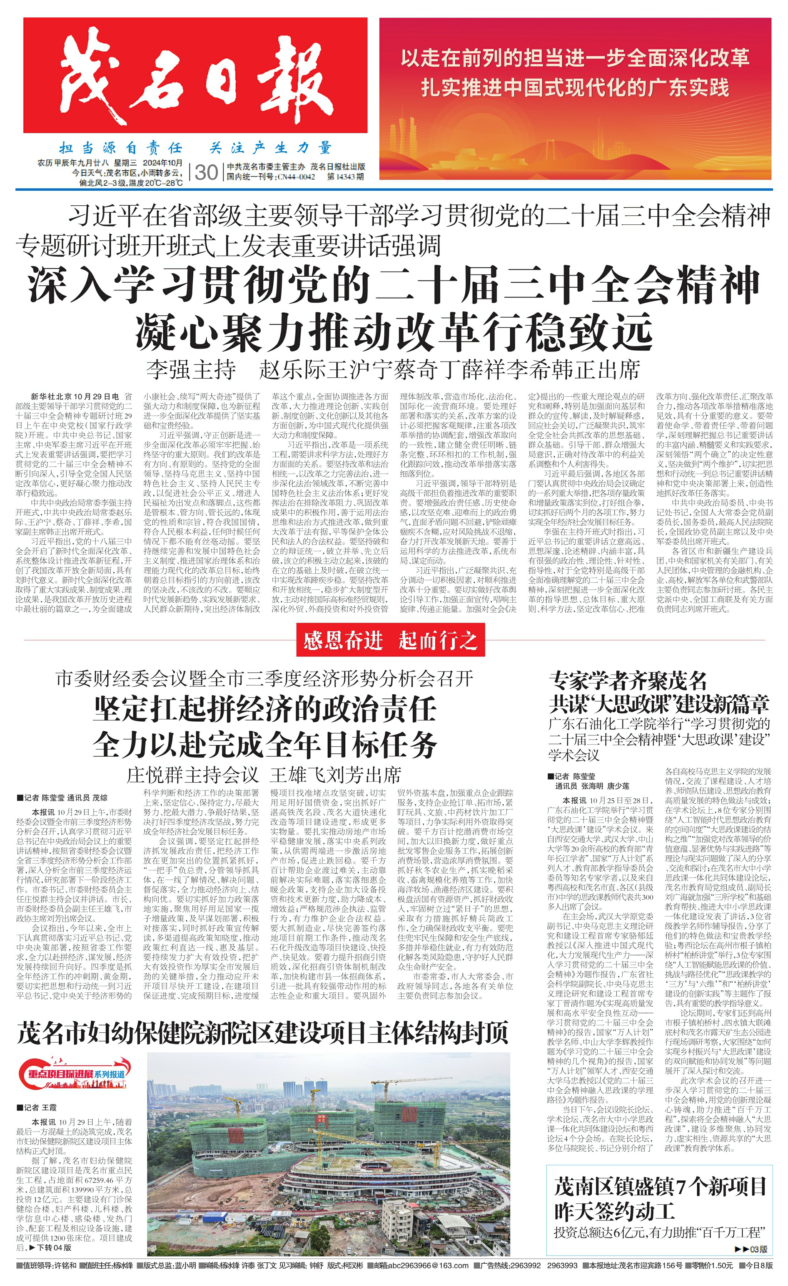 深入学习贯彻党的二十届三中全会精神 凝心聚力推动改革行稳致远