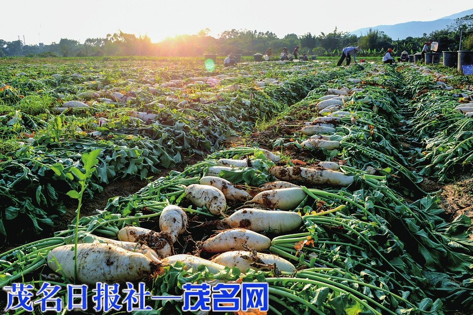 村民在地里采收萝卜。