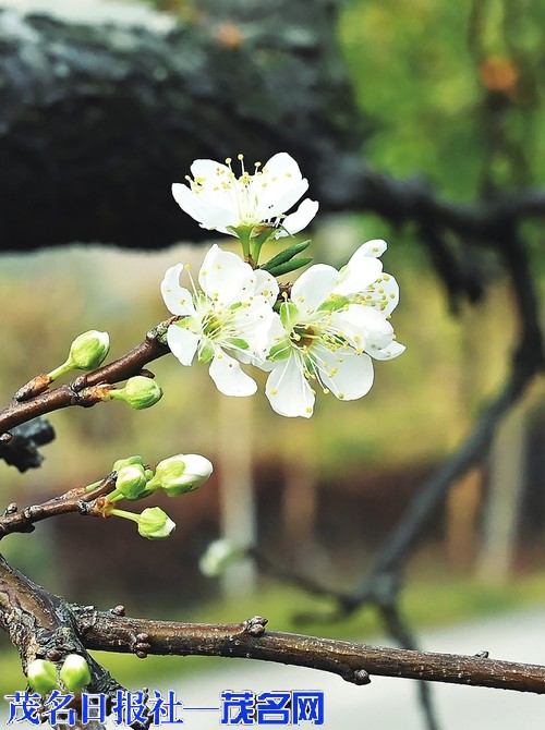 钱排李花陆续绽放。茂名日报社全媒体记者 甘杨松 摄