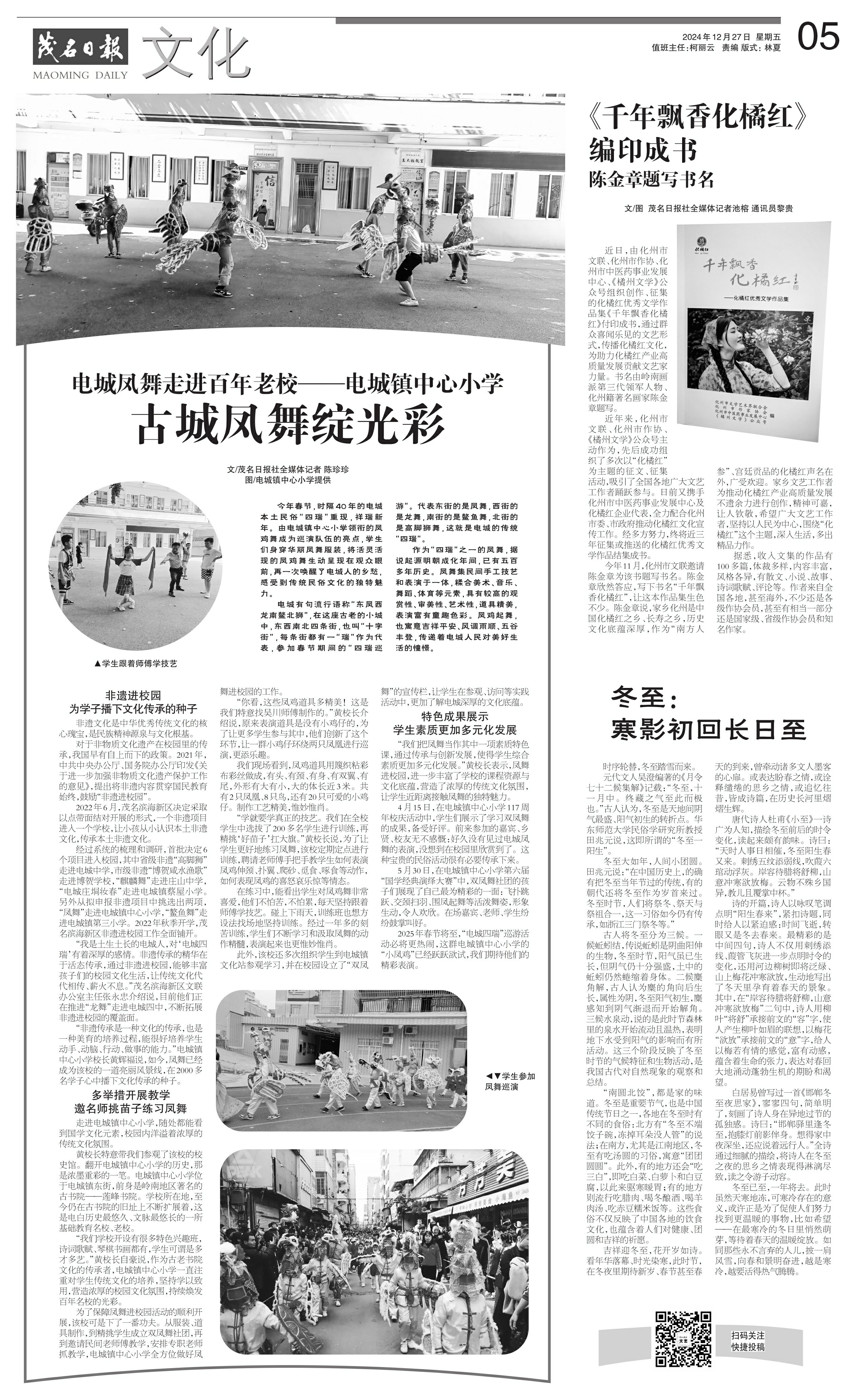 “非遗传承是一种文化的传承,也是一种美育的培养过程,能很好培养学生动手、动脑、行动、做事的能力。”电城镇中心小学校长黄辉福说,如今,凤舞已经成为该校的一道亮丽风景线,在2000多名学子心中播下文化传承的种子。