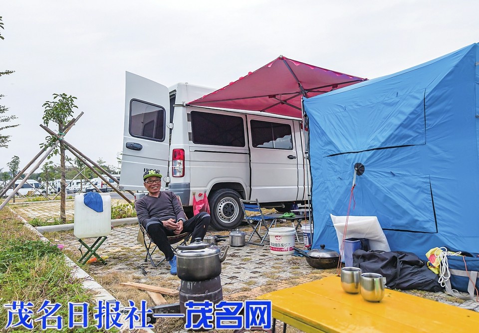 近几年,北方的“候鸟”来南方避寒过冬已经成为一种时尚。茂名年平均气温22.3℃~23℃,很多北方的游客携家带口或者结伴开着房车来茂名过暖冬。茂名新城水东湾海洋公园是茂名的一处热门景点,这里不仅风光旖旎,还有一片宽敞的停车场,为房车旅客提供了理想的栖息地。停车场内,来自全国各地的房车整齐排列,车牌号上京、黑、赣、皖、沪、川等字样体现了房车游客的地域广泛性。车辆旁,有人在支帐篷,有人在切菜做饭,有人在攀谈聊天,还有人在遛狗晒太阳,整个场景充满了温馨和欢乐。
