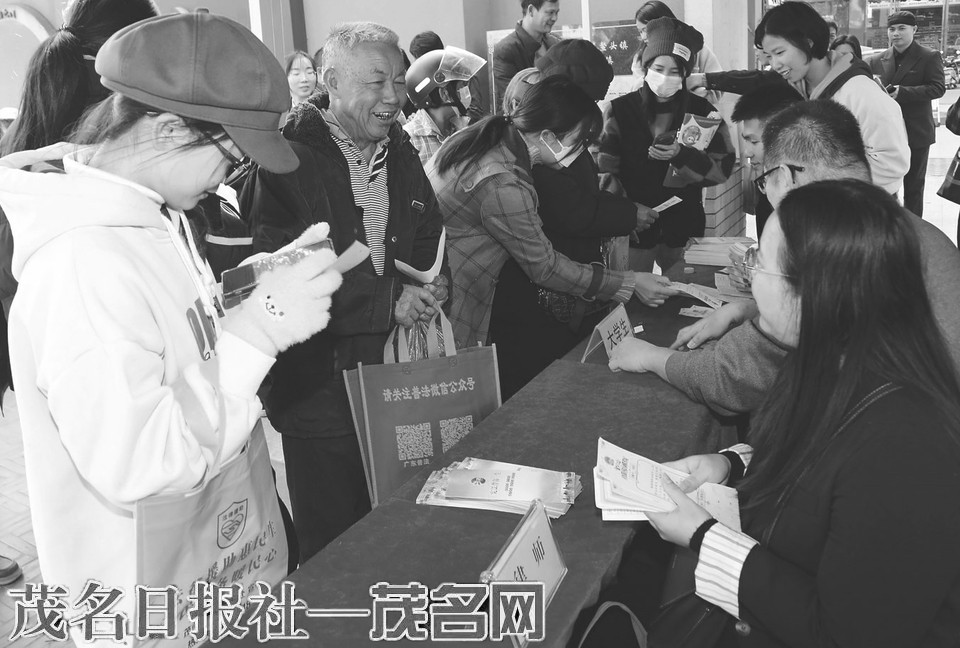 本报讯 2025年春节将至,为弘扬法治精神,充分发挥法治宣传教育在维护社会和谐稳定中的基础性作用,深化“1+ 6+N”基层社会治理工作体系建设,助力“百千万工程”,我市已启动春节期间法治宣传工作。近日,茂名市司法局、茂名市普法办、共青团茂名市委员会联合茂南区司法局、茂南区普法办组织省外青年大学生“百千万工程”乡村普法突击队走进茂南区鳌头镇,举办首场“普法宣传迎新春 法治护航过大年”主题宣传活动,推动乡村振兴和法治建设。活动亮点纷呈,迅速吸引众多群众前来参加,现场十分热闹。