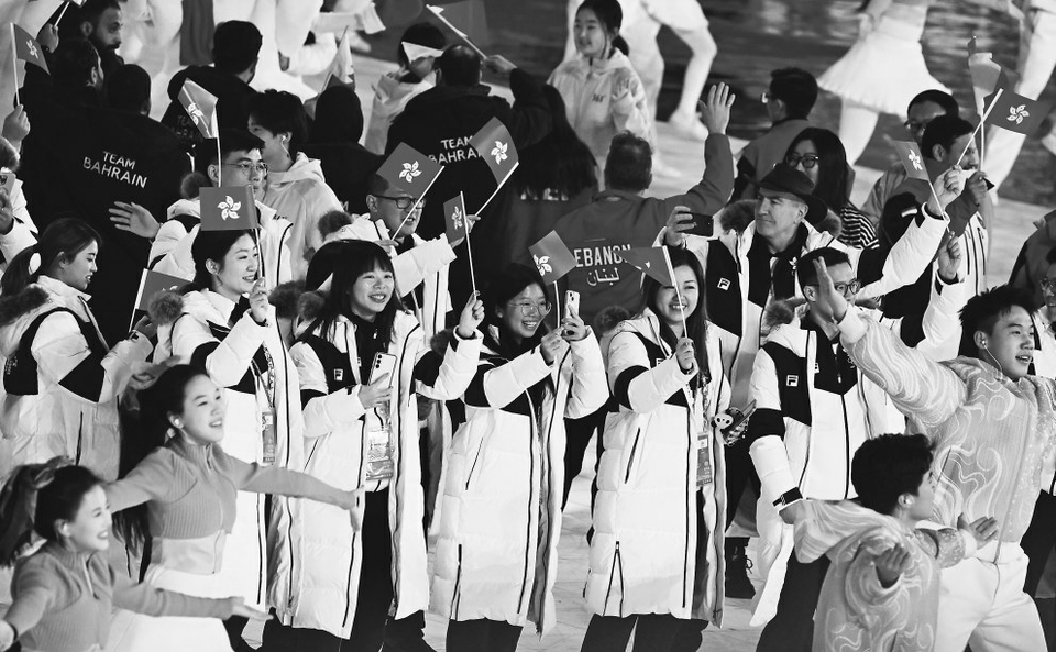 ▶中国香港体育代表团在闭幕式上。新华社记者 李一博摄