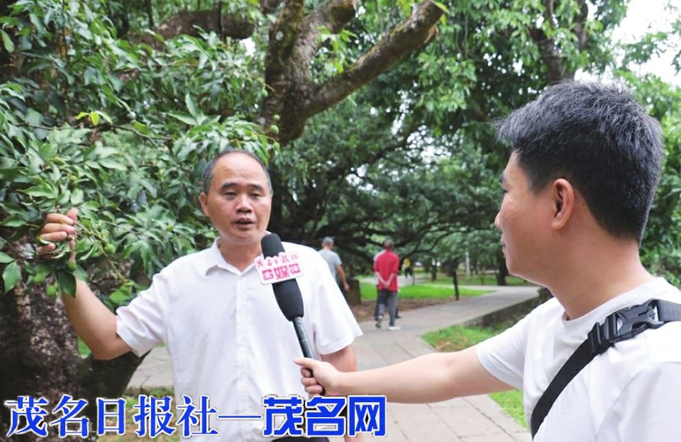 在这片古老的荔枝林中,古树守护人何树志正穿梭其间,轻抚着老树虬结的枝干,对记者说:“今年种植园的荔枝结果情况很不错!”