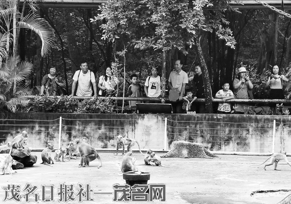 在茂名森林公园动物观赏区,从各地前来观光的游客络绎不绝。