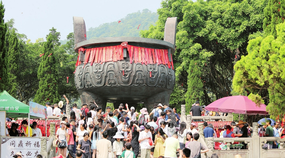 游客在鼎湖山问鼎祈福。 受访单位供图