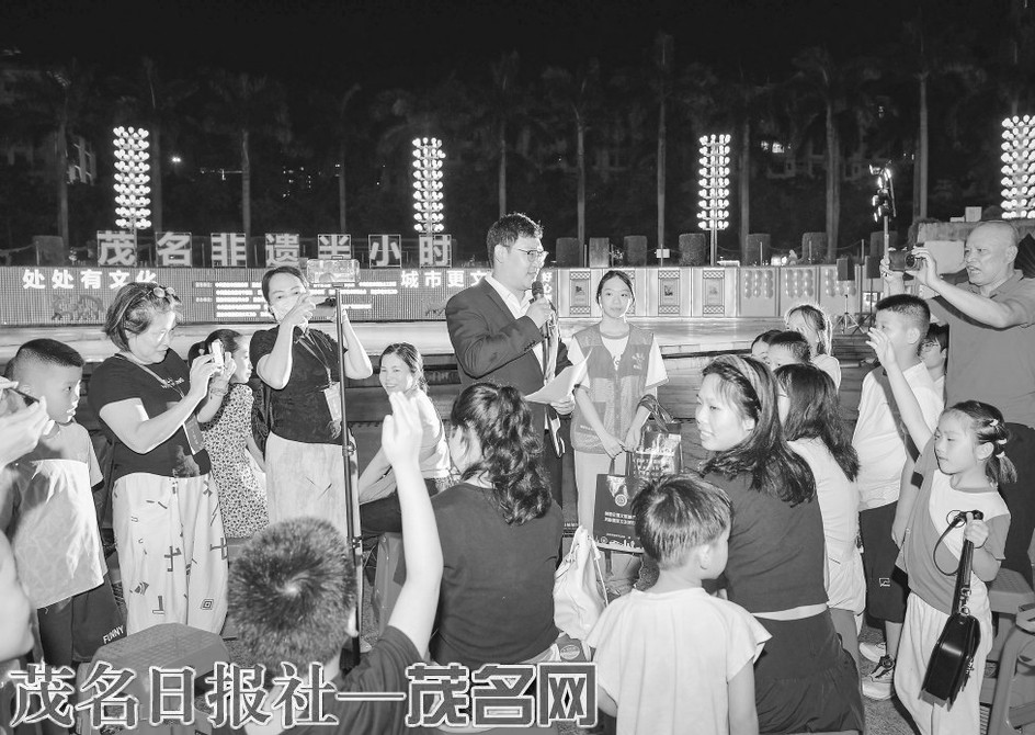 现场观众积极参与,纷纷举手抢答。答对的观众获得了茂名市创文巩卫办提供的纯棉毛巾和手机支架等小礼品。这一环节不仅增加了活动的趣味性和互动性,还让观众在轻松愉快的氛围中学习到了非遗知识和城市文明建设的相关内容。