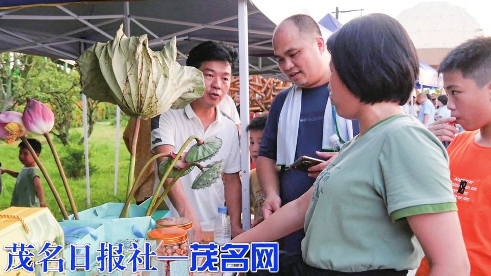 值得一提的是,每个摊位前更有镇街干部坐镇,化身“推销员”,为本地农产品热情推介,既为土特产拓宽销路,更拉近了干群距离。“我尝了沙田龙眼、深镇镇的夏威夷果、荷花镇的莲子糖水、宝光街道的番石榴等等,每个镇街的农产品都很美味、有特色。我买了两份双拼籺做早餐,摊主还很热情地送了我几个香水柠檬,人情味十足。”在茂名过来游玩的曾小姐笑笑说道。