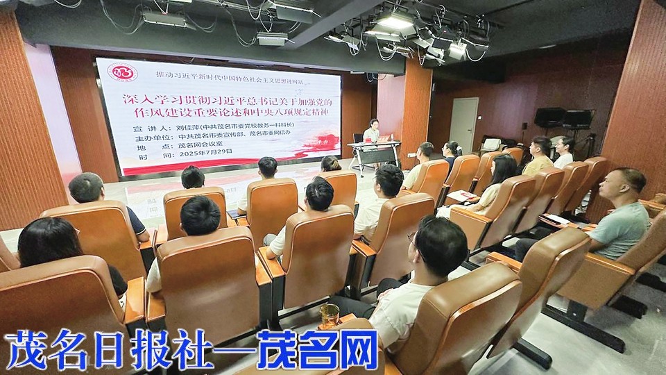 本报讯 为深入推动习近平新时代中国特色社会主义思想进网站,持续强化我市网站工作者的作风建设意识,提升工作效能与责任担当,7月29日上午,由茂名市委宣传部、茂名市委网信办主办的深入学习贯彻习近平总书记关于加强党的作风建设重要论述和中央八项规定精神宣讲报告会在茂名网举行。此次宣讲报告会由茂名市委党校教务一科科长刘佳萍主讲。