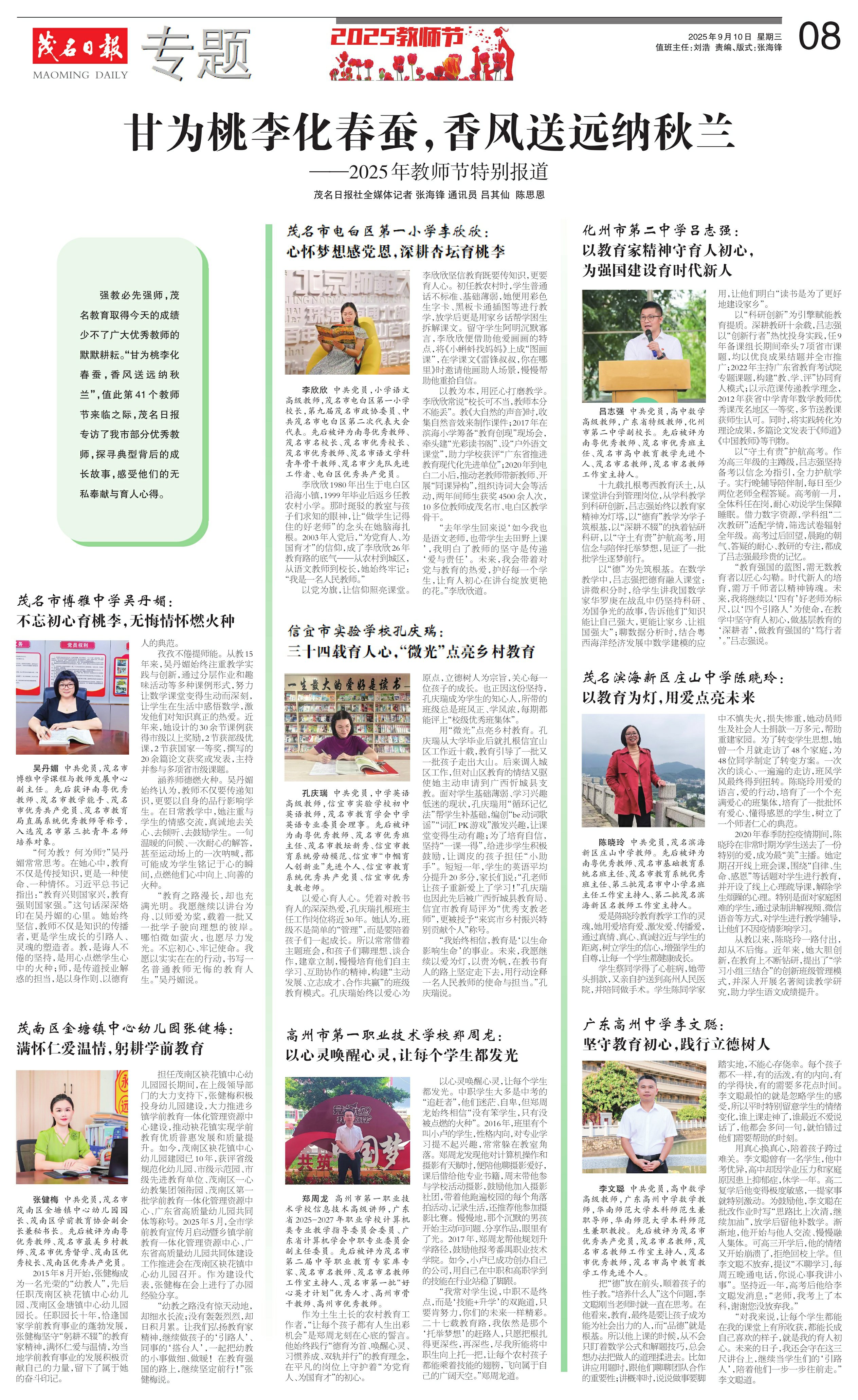 甘为桃李化春蚕,香风送远纳秋兰