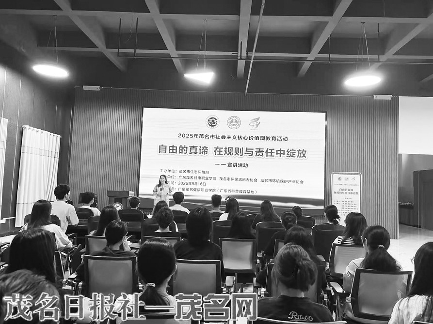 本报讯 为进一步贯彻落实习近平生态文明思想,践行社会主义核心价值观,市生态环境局于9月16日下午走进广东茂名健康职业学院,开展了一场主题为“自由的真谛:在规则与责任中绽放”的宣讲活动。