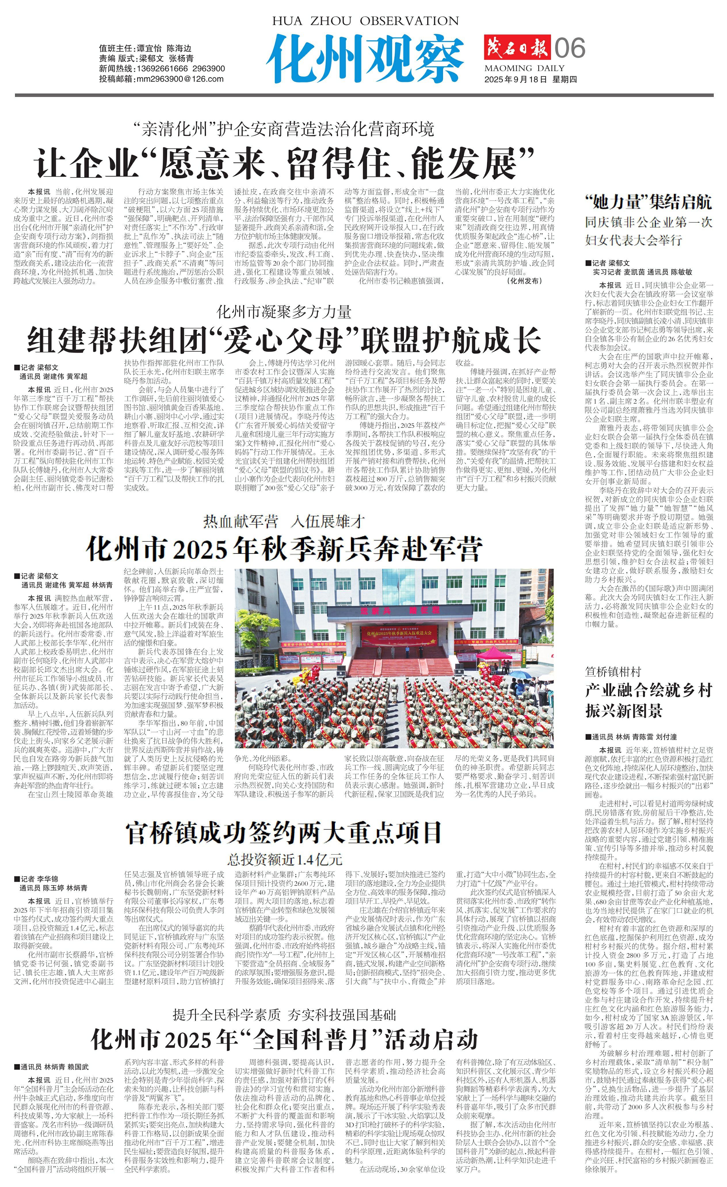 蔡爵华代表化州市委、市政府对项目的成功签约表示祝贺。他强调,化州市委、市政府始终将招商引资作为“一号工程”,化州市上下要营造“全员招商、全域服务”的浓厚氛围;要增强服务意识,提升服务效能,确保项目招得来、落得下、发展好;要加快推进已签约项目的落地建设,全力为企业提供全方位、高效率的服务保障,推动项目早开工、早投产、早见效。