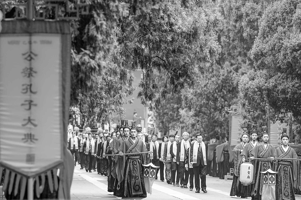 祭祀孔子的活动始于公元前478年,最初每年秋季一次,到东汉时实行春秋两祭制。如今的祭孔大典用音乐、舞蹈等形式展现儒家思想文化,阐释儒家学说中“礼”的涵义。今年祭孔大典以“仁礼天下·和合大同”为主题,分为“礼宾天下、礼启圣门、礼敬至圣、礼运大同”四个篇章,是2025中国国际孔子文化节的核心活动之一。