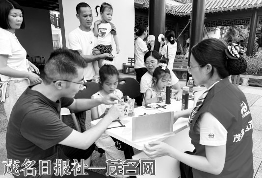 国庆节当天,包茂、茂湛高速志愿者在柏桥服务区设立灯笼DIY活动,游客家长们手把手教孩子制作中秋灯笼。