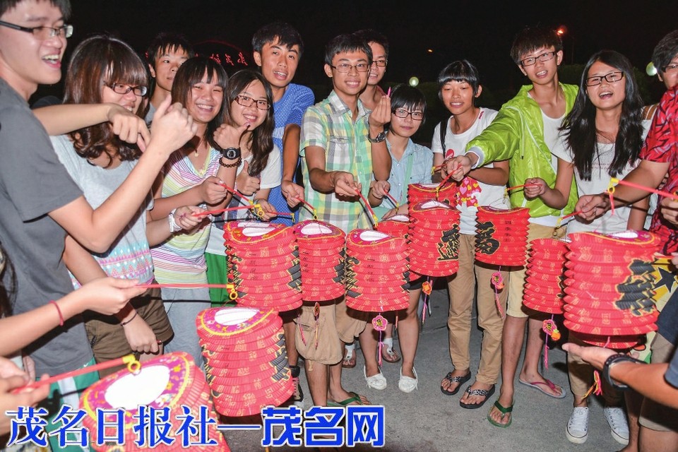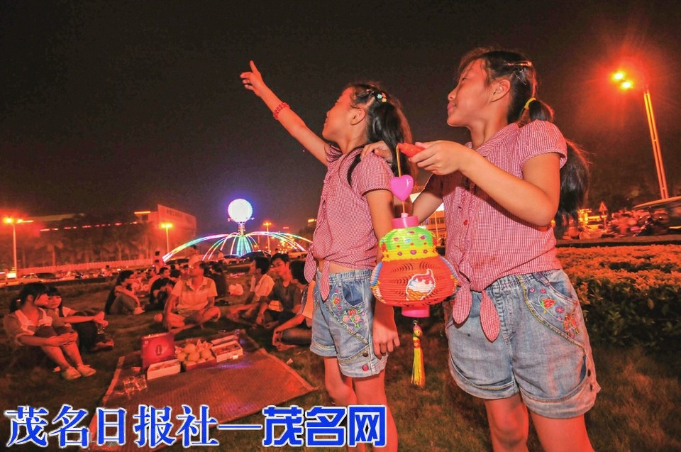 2011年中秋夜,广东石油化工学院刚入学的新生举着灯笼赏月。