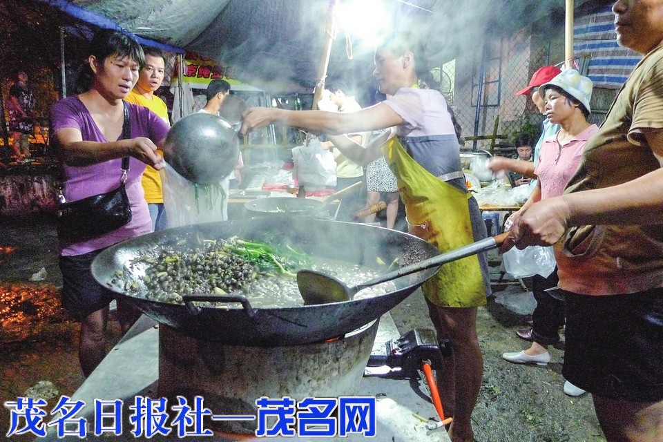 2011年中秋夜,茂名街头的炒田螺档生意火爆。