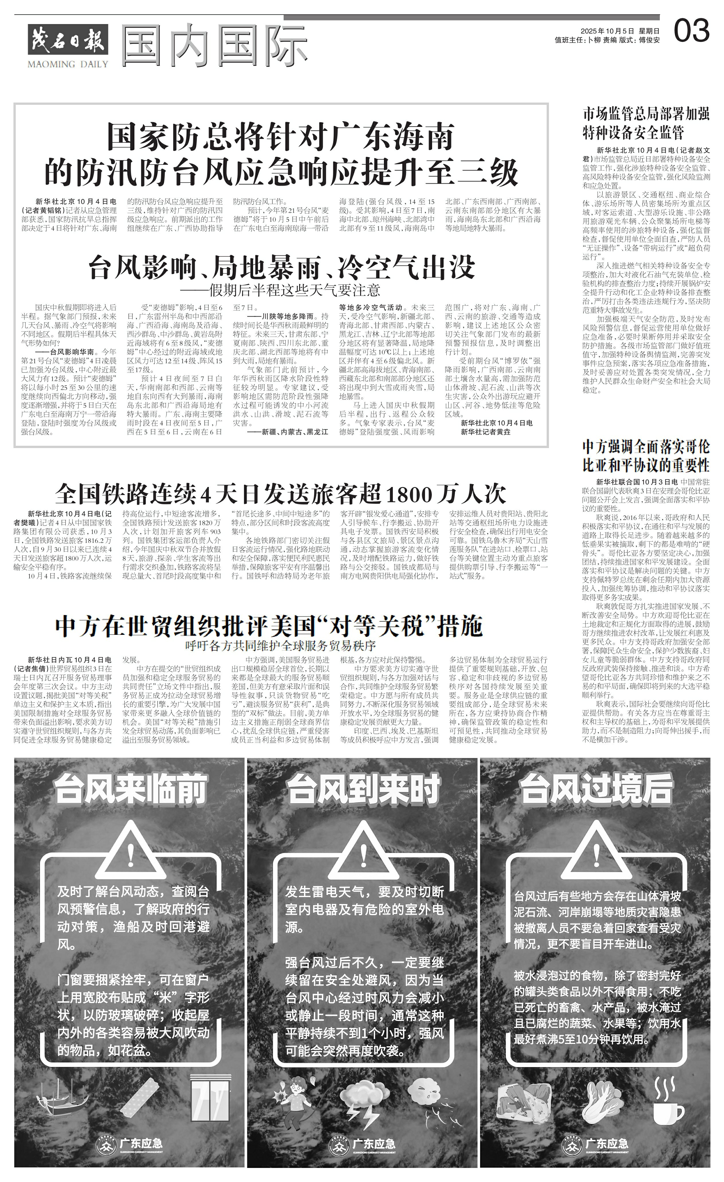 国家防总将针对广东海南的防汛防台风应急响应提升至三级