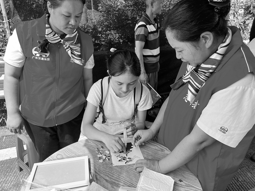 ▲在茂湛高速浅水站,志愿者耐心指导参与者制作陶瓷画。