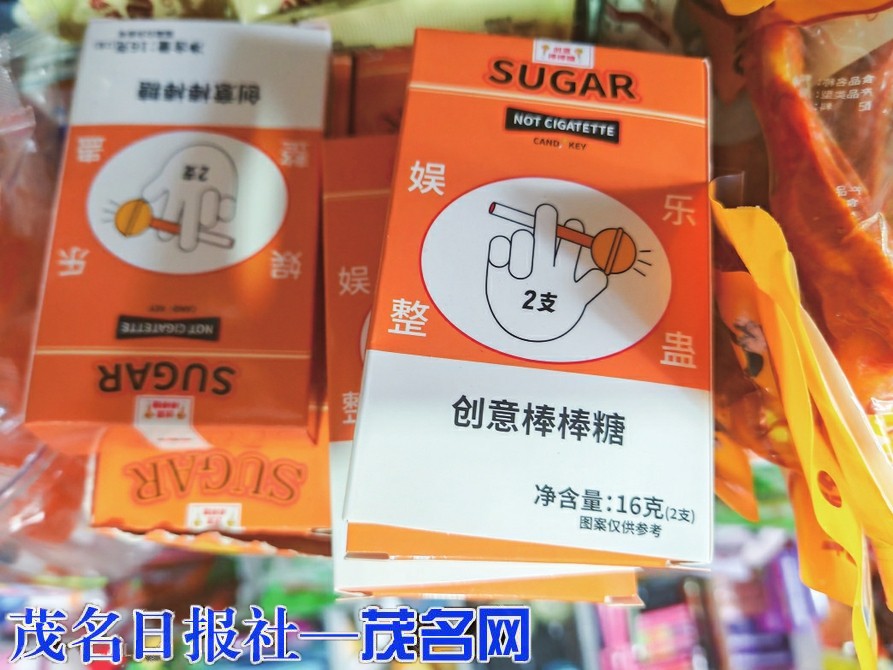 近日,有市民报料称,一款外形酷似香烟的棒棒糖在茂名部分小学校园周边商店出现,引起不少学生家长的担忧。家长质疑,此类产品是否在变相诱导未成年人模仿吸烟行为?接到报料后,茂名日报社全媒体记者实地走访了茂名市区三所中小学附近的六家零食商铺。