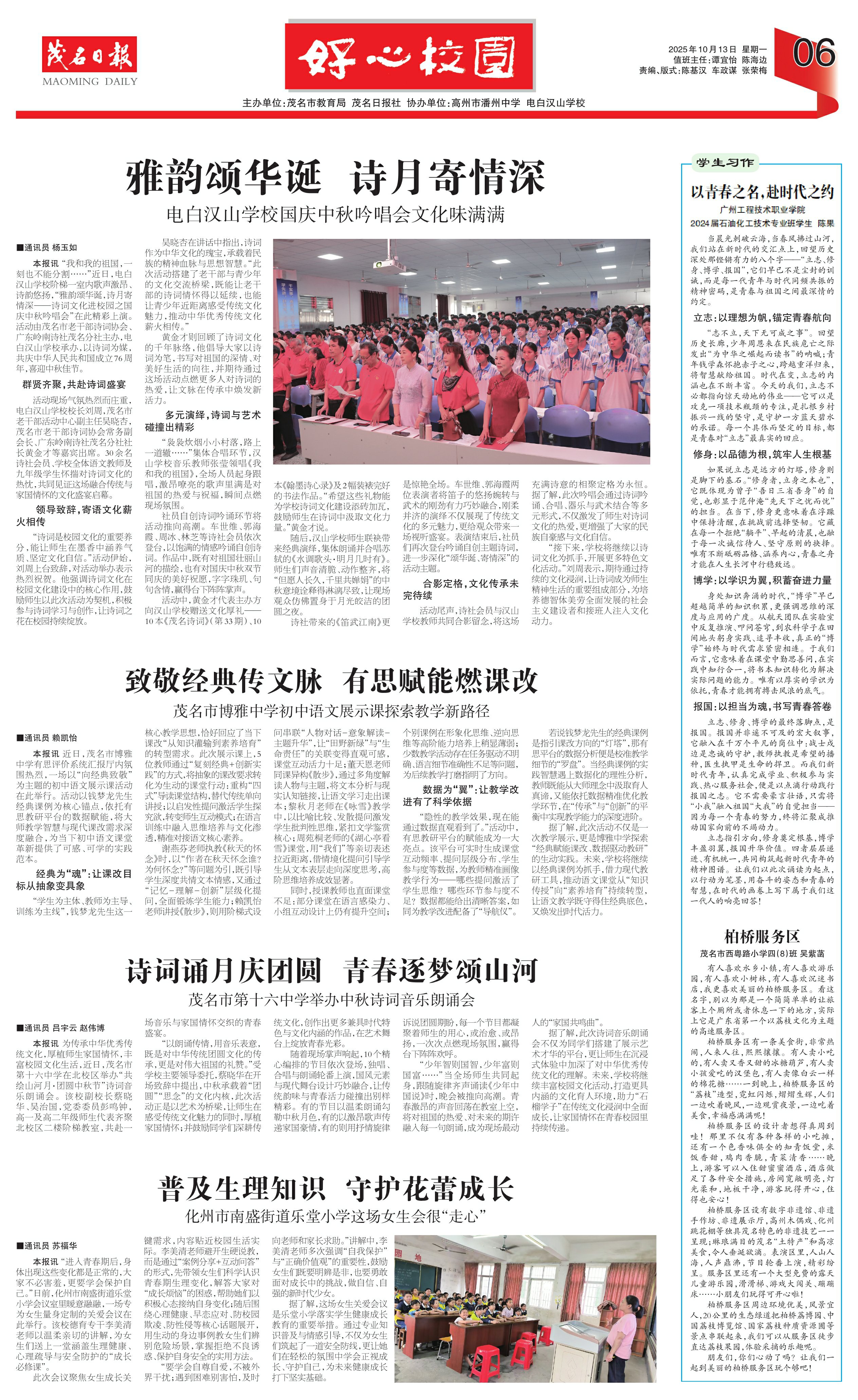本报讯 近日,茂名市博雅中学有思评价系统汇报厅内氛围热烈,一场以“向经典致敬”为主题的初中语文展示课活动在此举行。活动以钱梦龙先生经典课例为核心锚点,依托有思教研平台的数据赋能,将大师教学智慧与现代课改需求深度融合,为当下初中语文课堂革新提供了可感、可学的实践范本。