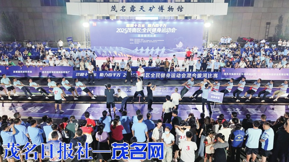 本报讯 为贯彻落实习近平总书记关于全民健身和加快体育强国建设的重要论述精神,深入推进“百千万工程”的实施,丰富和活跃人民群众文化体育生活,推动群众性体育运动开展,展示茂南人奋发向上的精神面貌,营造迎接第十五届全国运动会,以及广东省第十七届运动会在茂名举办的良好氛围,10月14日晚,“喜迎十五运助力百千万”2025茂南区全民健身运动会混合拔河比赛在茂名露天矿博物馆广场火热开赛。