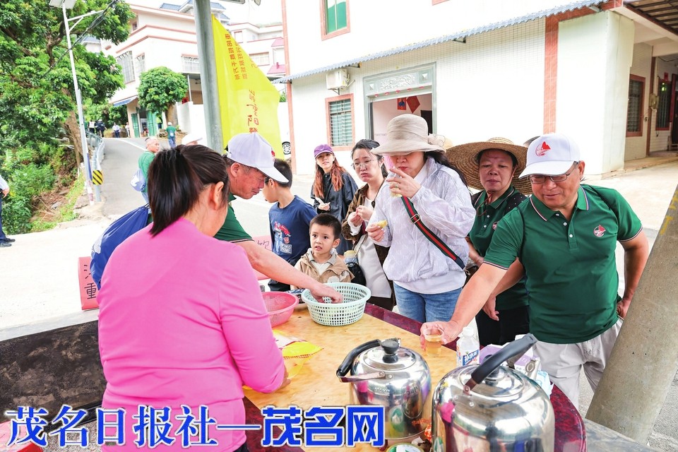 ▲登高路线沿线村民自发准备凉茶给登高者饮用。茂名日报社全媒体记者 吴昊 摄