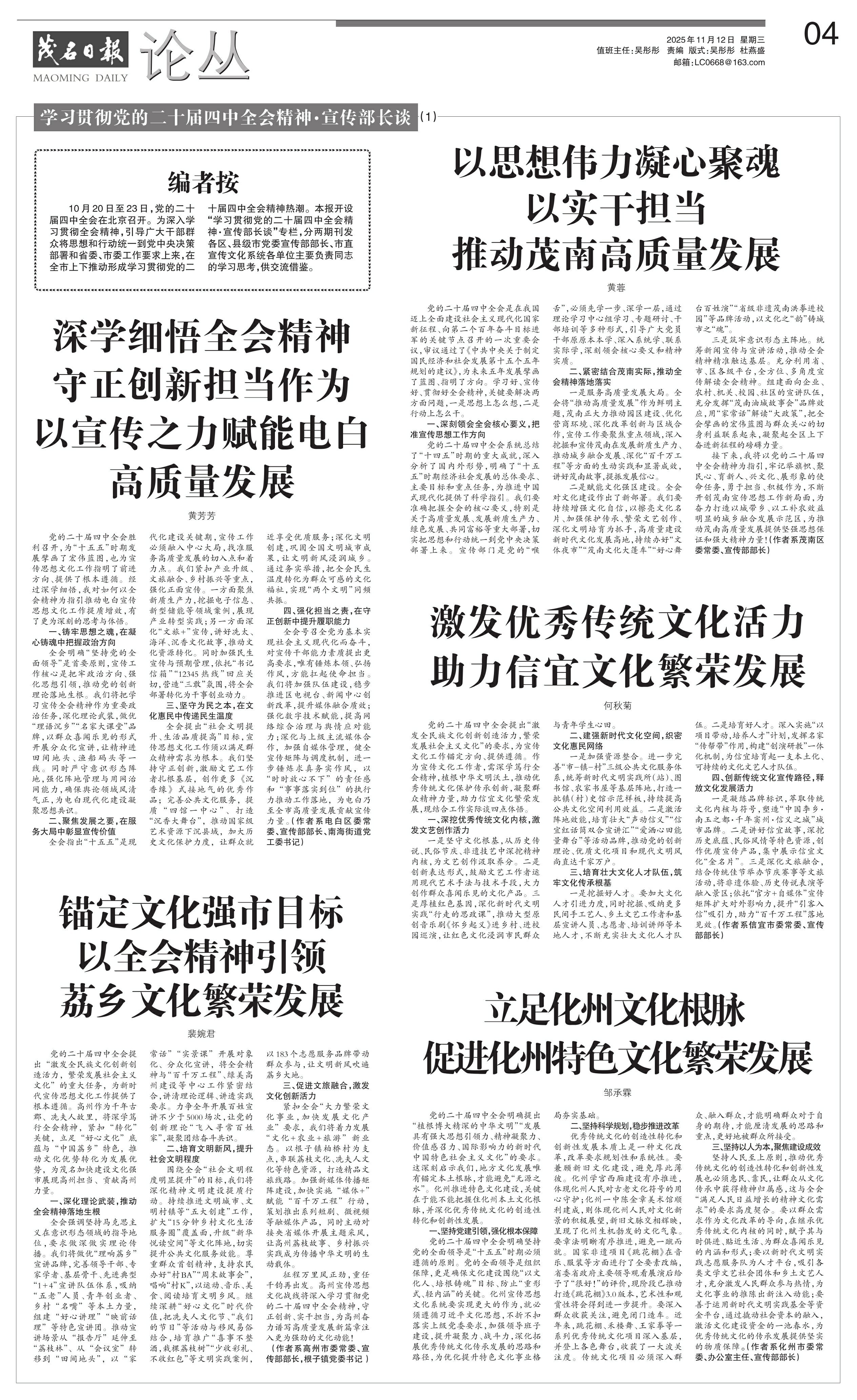 学习贯彻党的二十届四中全会精神·宣传部长谈(1)