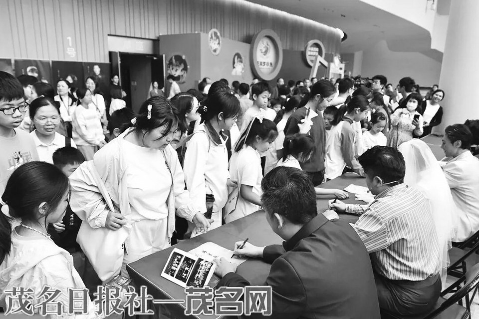 ▲演出结束,观众与演职人员积极互动,这是主创人员为茂名小观众在演出画册上签名。