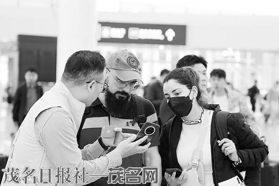 外国游客咨询领取深圳AI城市旅行卡。
