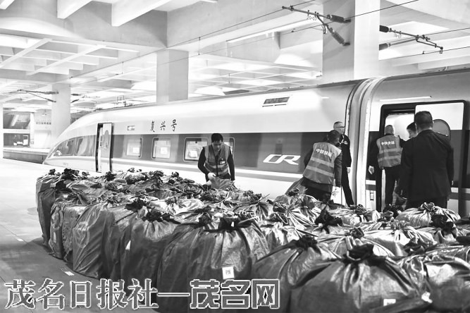 新华社武汉电(记者王自宸潘志伟)11月15日凌晨5时,汉口站站台上,已装袋整齐的服装、生鲜、电子产品等10吨快件有序摆放,铁路工作人员正将包裹搬进高铁车厢。当天,DJ892次和DJ890次高铁动车组列车分别从汉口站和广州白云站开出,华中地区与粤港澳大湾区新添高铁快运线路。