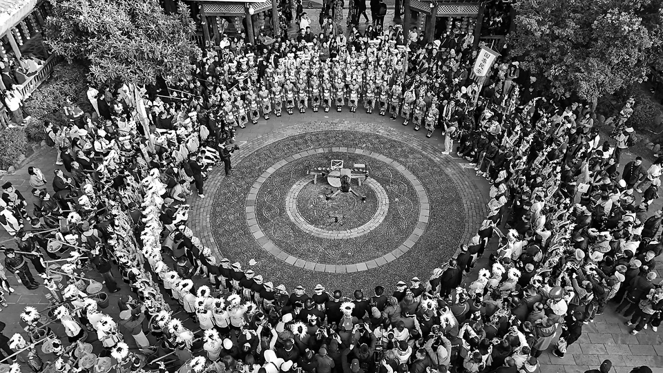 2024年11月30日,侗族群众在贵州省黔东南苗族侗族自治州黎平县肇兴侗寨进行文艺表演(无人机照片)。 新华社发(王纯亮 摄)