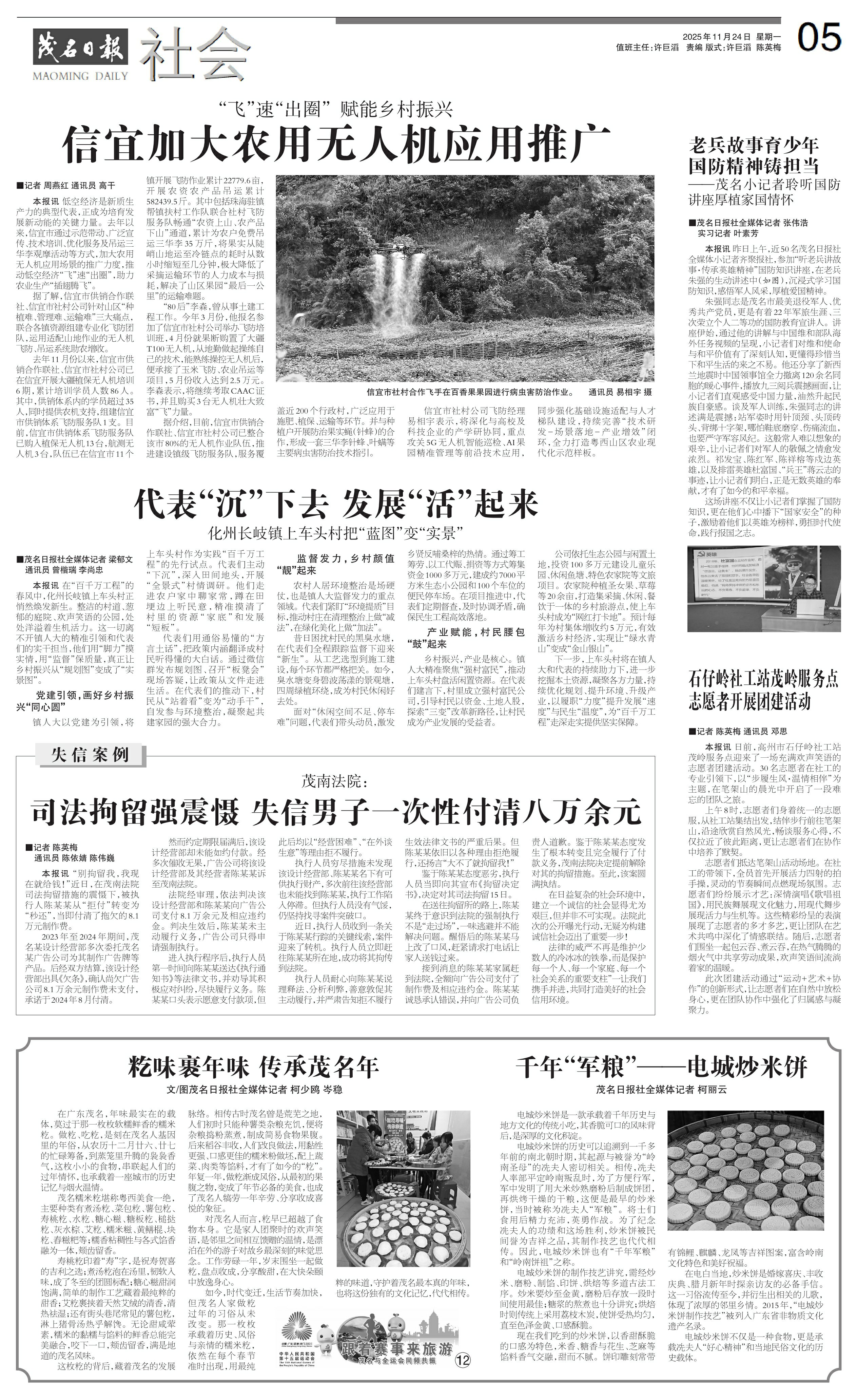 信宜市社村公司飞防经理易相宇表示,将深化与高校及科技企业的产学研协同,重点攻关5G无人机智能巡检、AI果园精准管理等前沿技术应用,同步强化基础设施适配与人才梯队建设,持续完善“技术研发-场景落地-产业增效”闭环,全力打造粤西山区农业现代化示范样板。