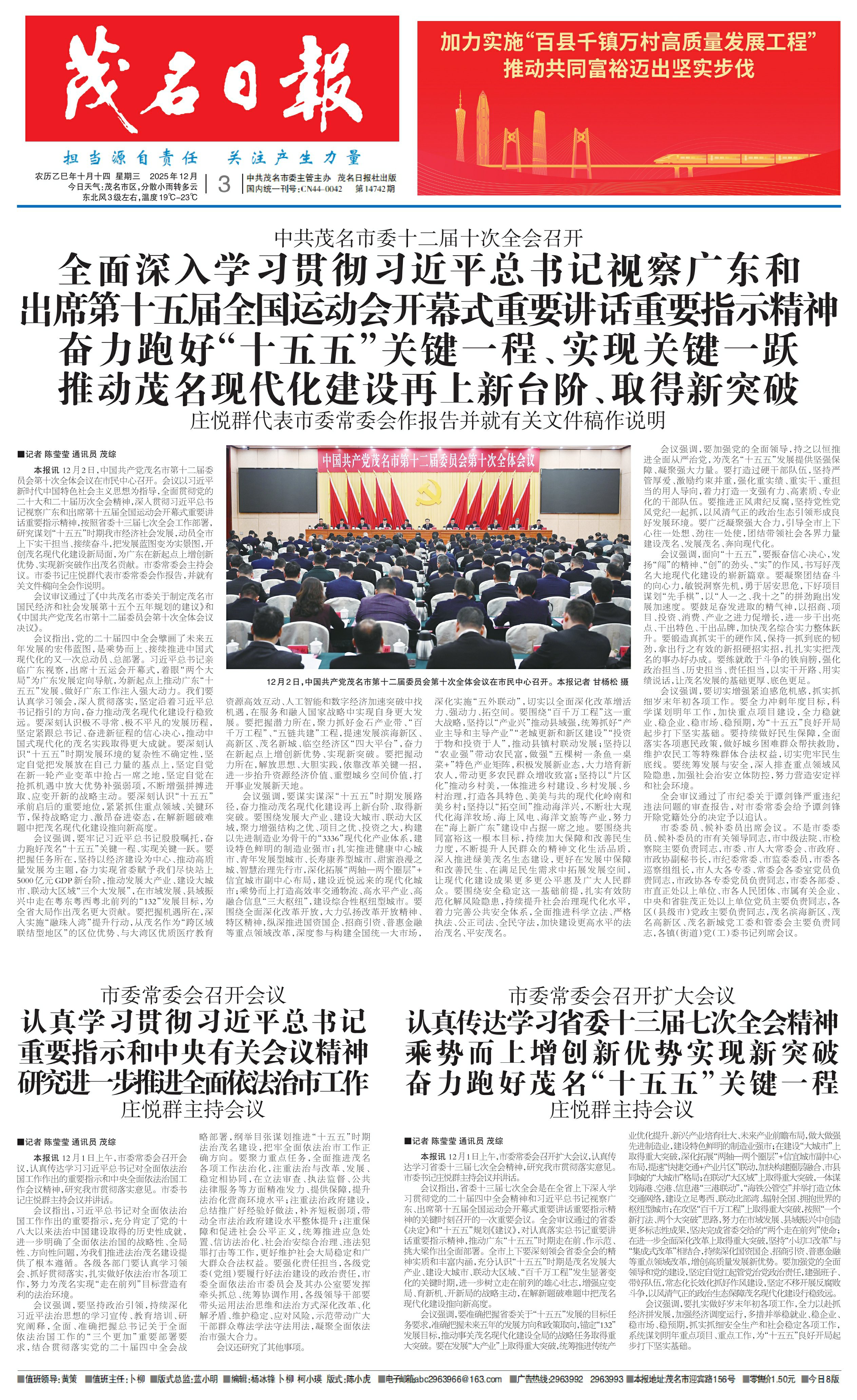 全面深入学习贯彻习近平总书记视察广东和出席第十五届全国运动会开幕式重要讲话重要指示精神 奋力跑好“十五五”关键一程、实现关键一跃 推动茂名现代化建设再上新台阶、取得新突破