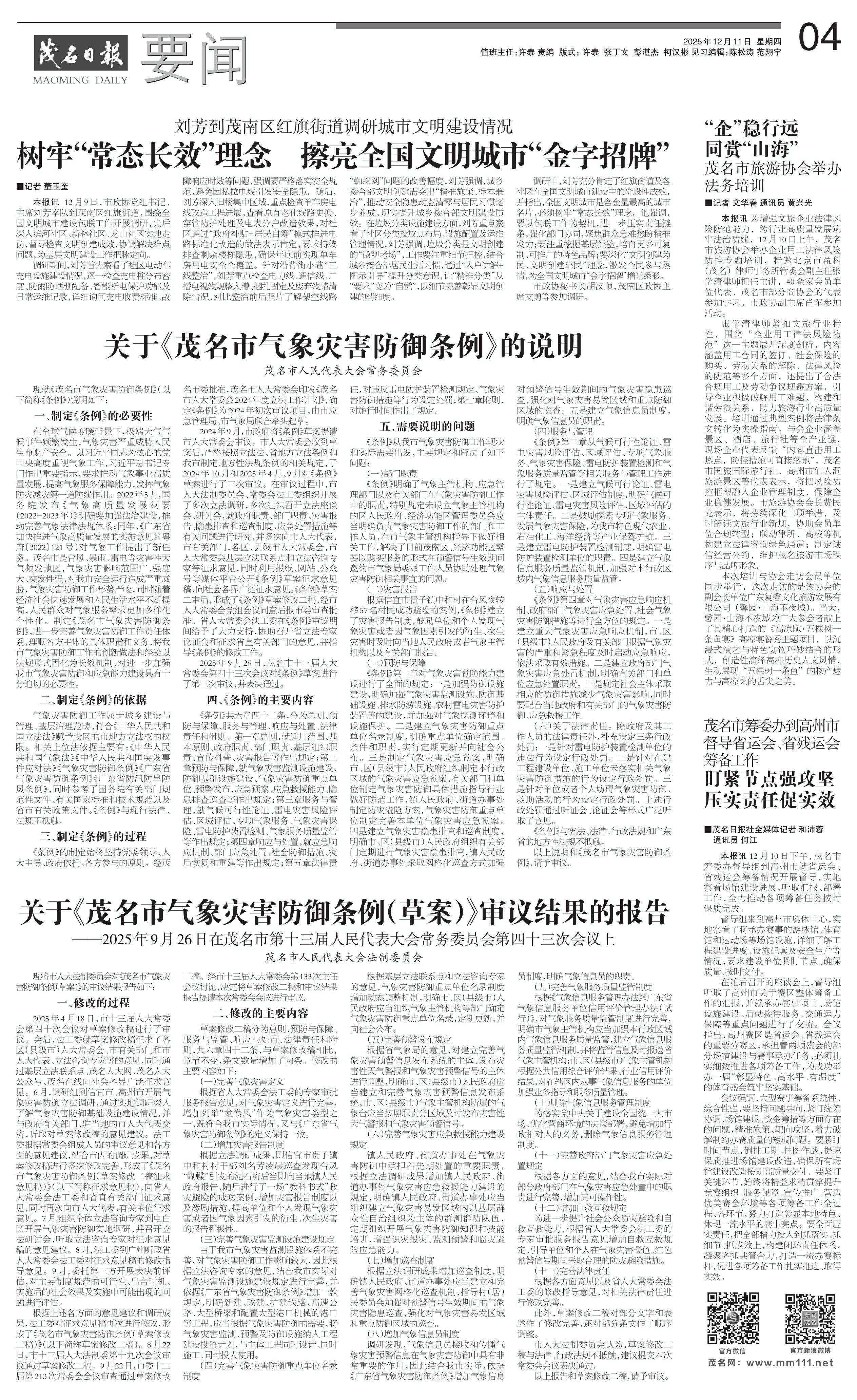 关于《茂名市气象灾害防御条例》的说明
