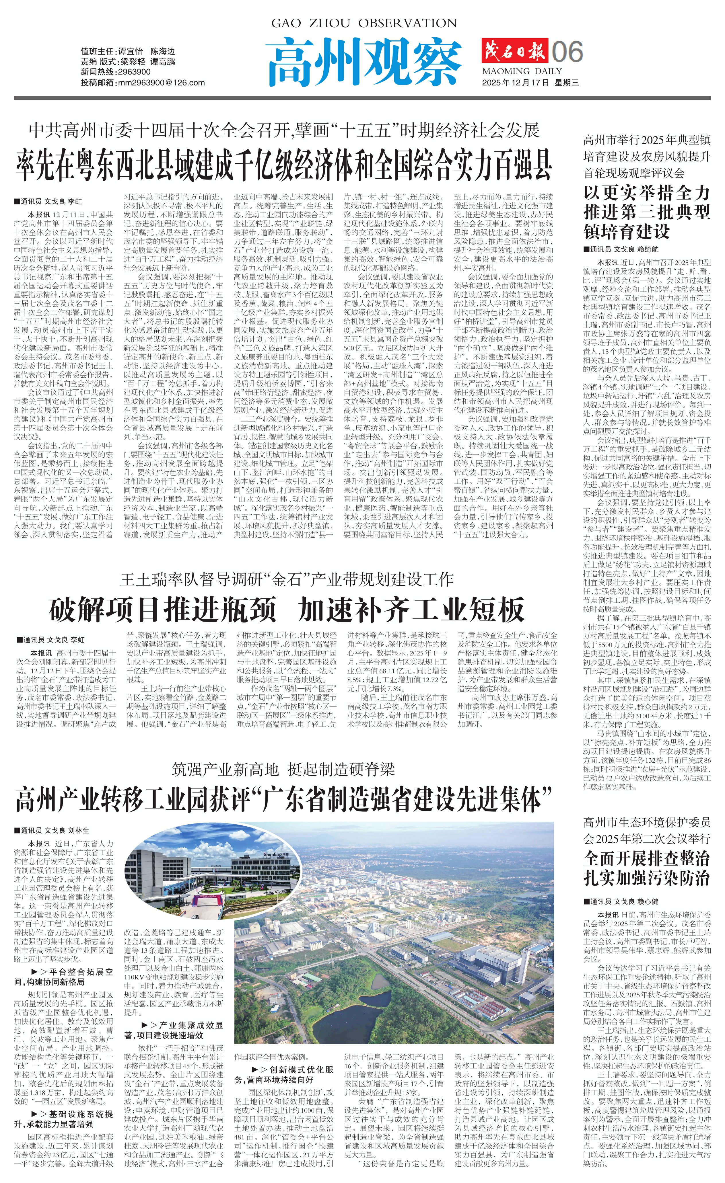 高州产业转移工业园获评“广东省制造强省建设先进集体”