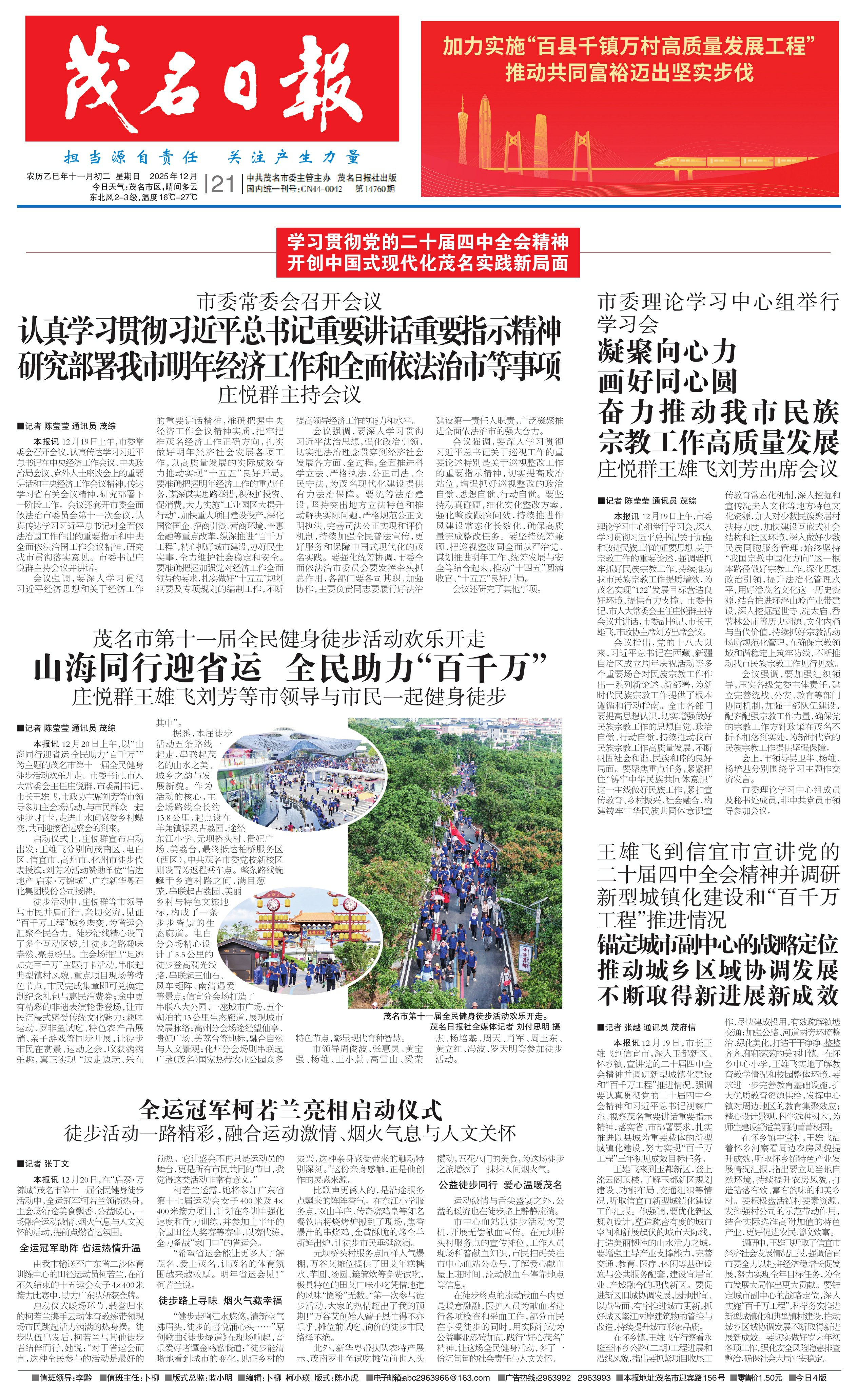 本报讯 12月20日,在“启泰·万锦城”茂名市第十一届全民健身徒步活动中,全运冠军柯若兰领衔热身,主会场沿途美食飘香、公益暖心,一场融合运动激情、烟火气息与人文关怀的活动,提前点燃省运氛围。