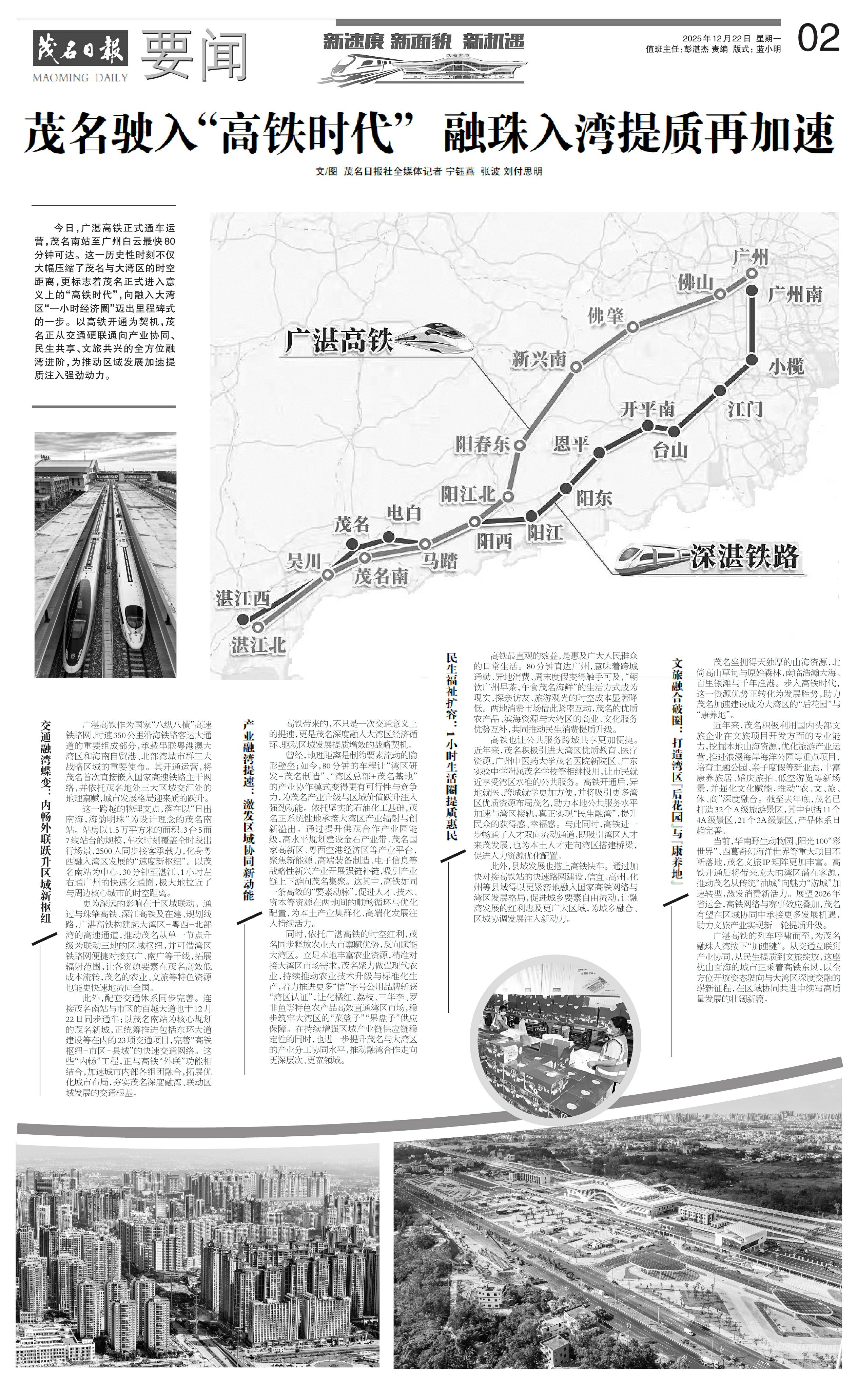 茂名驶入“高铁时代”融珠入湾提质再加速